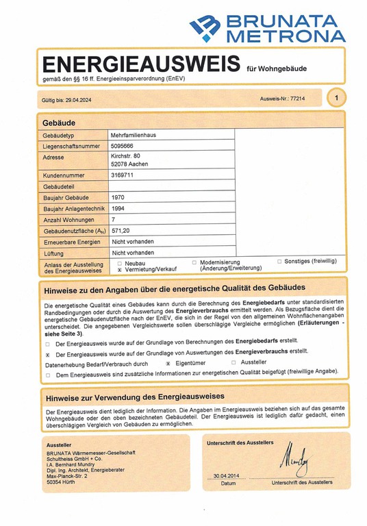 Vorauszahlung Heizung € 70,00