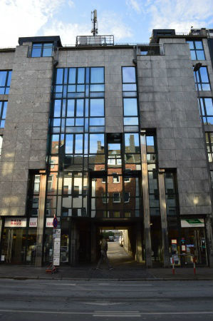 Im Erdgeschoss befinden sich rechts und links der Einfahrt 2 Ladenlokale, und auf der 1. und 2. Etage ein Immobilienbüro und eine Zahnarztpraxis.
